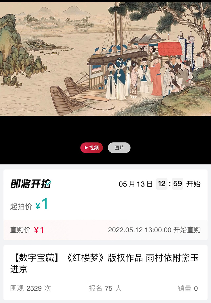 历时8年打造,清代国画大师孙温手绘的《红楼梦全本图》,借助区块链技术,推出限量动态数字艺术作品,让《红楼梦》文化更贴近大众。包括《雨村依附黛玉进京》等在内的首批13款动态数字藏品已上线阿里资产,将于5月9日至20日陆续发售。