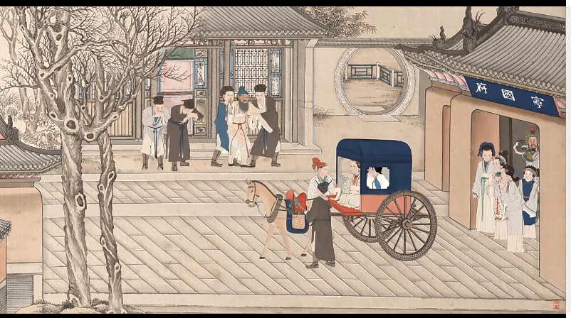 比如首批上线的13款动态数字作品中的《凤姐坐车闻焦大骂》,在24秒的视频中,原本静态的画面人物都动了起来:焦大酒后发疯,不仅大骂,还指手或踹脚,坐在车里的凤姐拍了拍车边的贾蓉,示意他不要管,装作没听见。